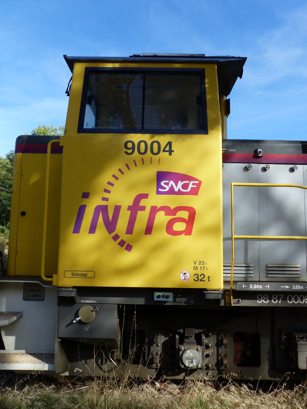 Voici le locotracteur Y 9004 Infra 98 87 0009 004-2 F-SNCF avec une rame de contrôle des ouvrages d'art