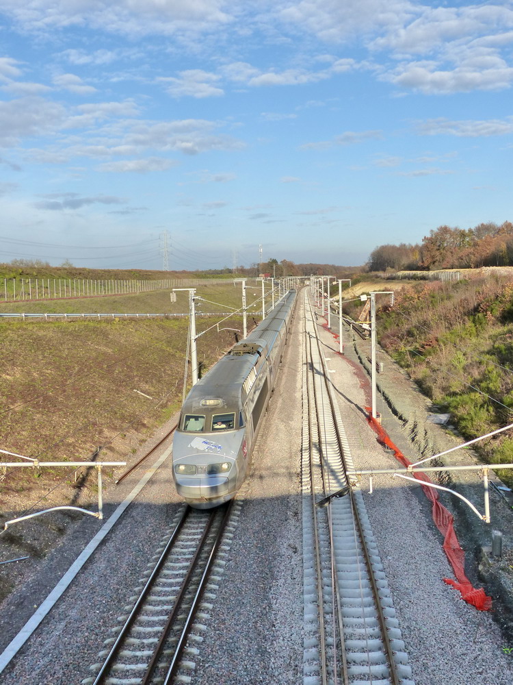 TGV Atlantique en UM passe sur la déviation LGV au PK224/223 en provenance de Bordeaux pour la direction du Nord