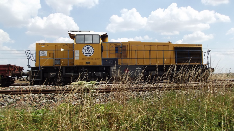 La voici sur une rame de travaux TSO/Colas Rail au passage de la gare de Pignans (83)
