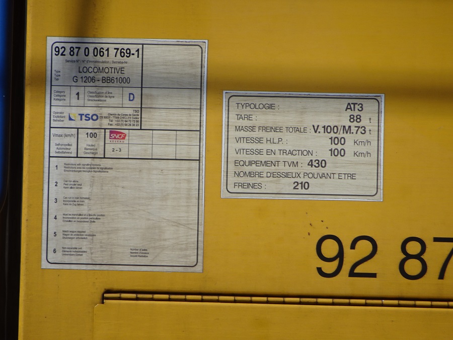 G 1206 BB 5702069 mise en service en 2013 EVN n° 92 87 0 061 769- F-TSO