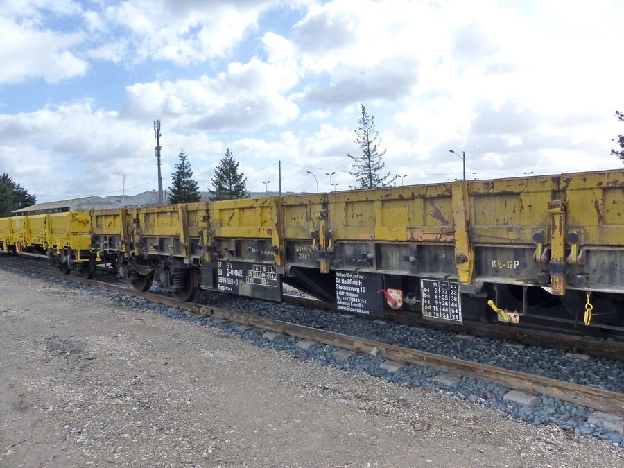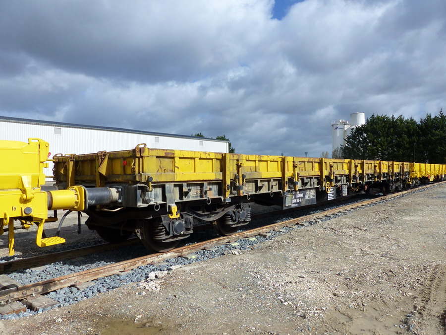 Voici le wagon plat 33 80 3999 188-0 Res RIV D-ORME de la société On Rail sur le site de Ferrotract à Saint Pierre des Corps