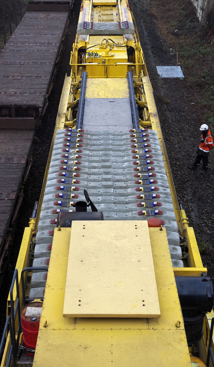 fin de la découpe d'un tronçon de rail avec le système de l'oxycoupage
