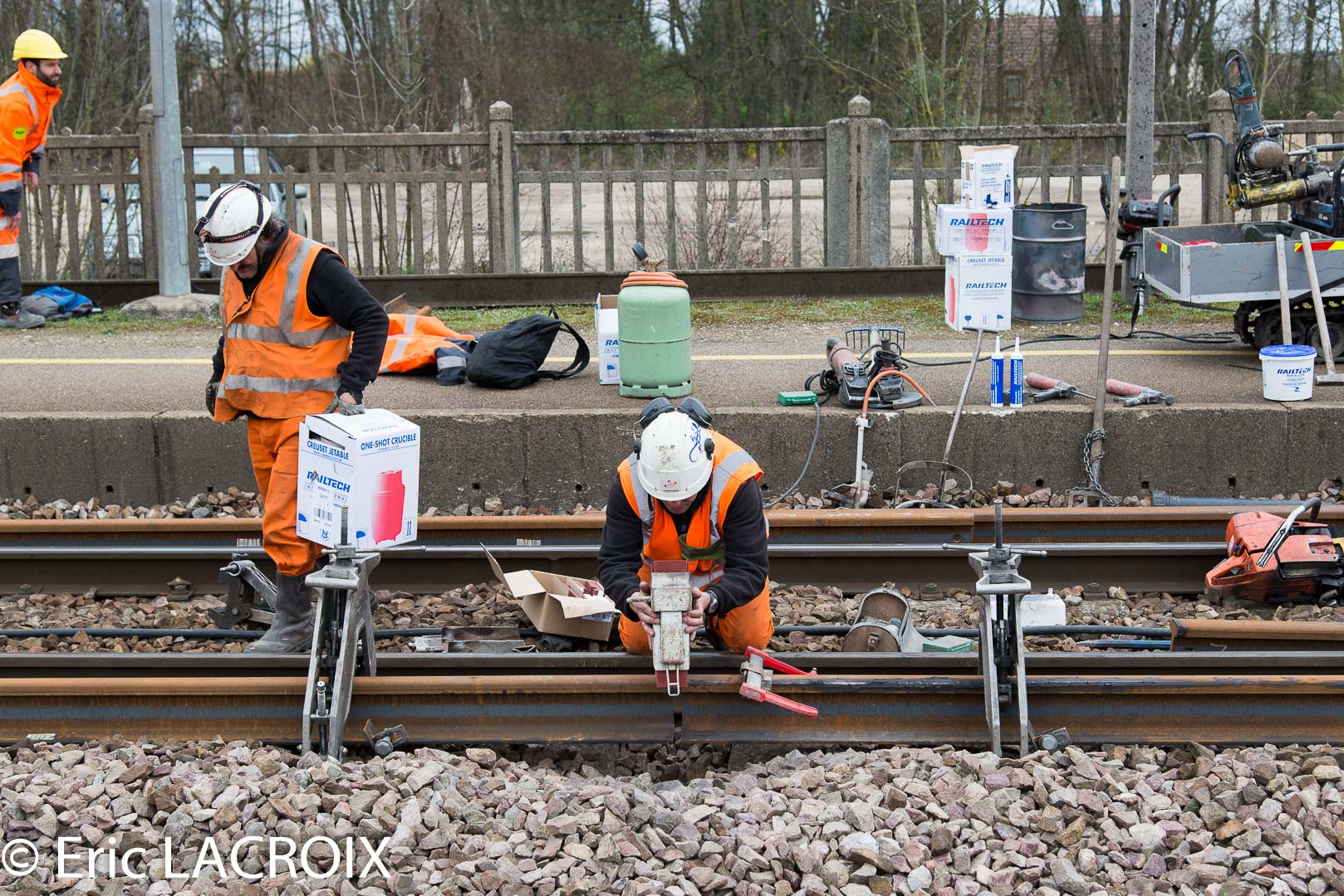 - Soudure aluminothermique des rails par la Société LSF La Soudure Ferroviaire. RVB Villeneuve la Guyard le 20 mars 2017.