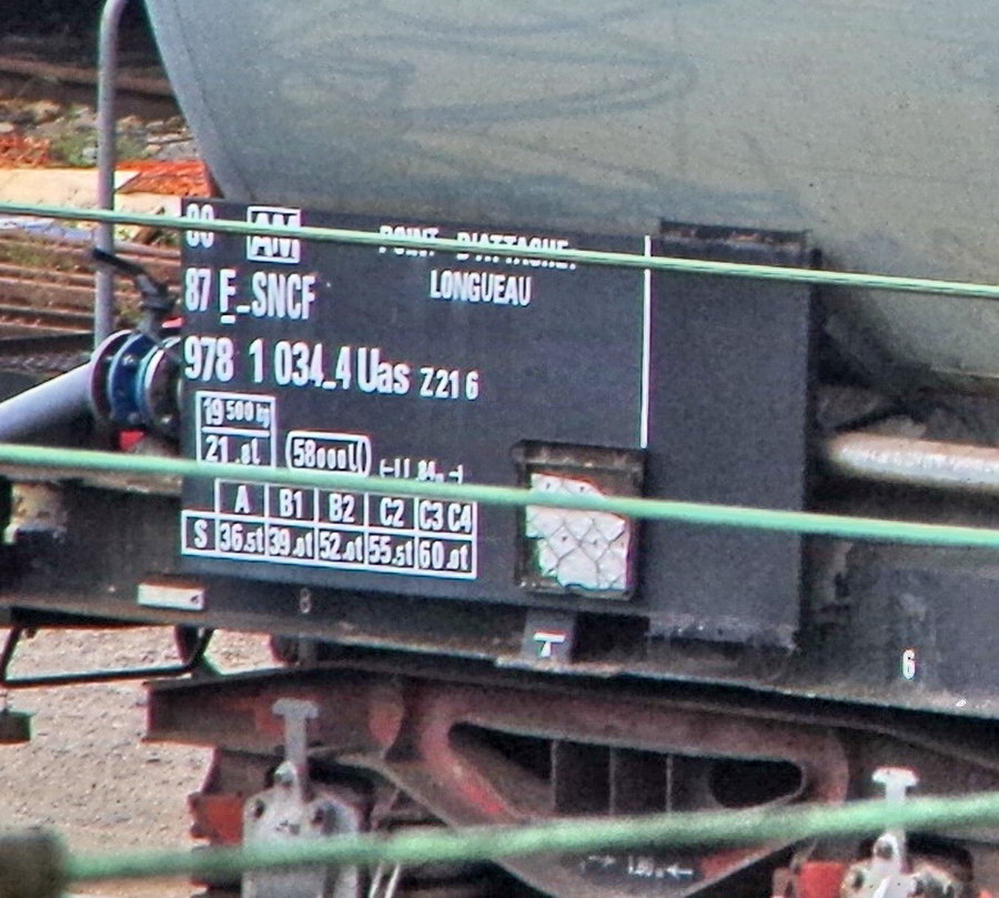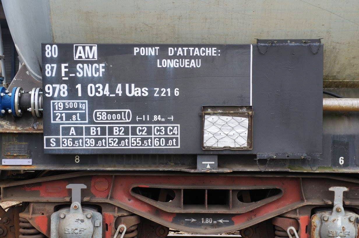 Voici le wagon citerne 80 87 978 1 034-4 Uas Z21 6 F SNCF-AM - point d'attache Longueau