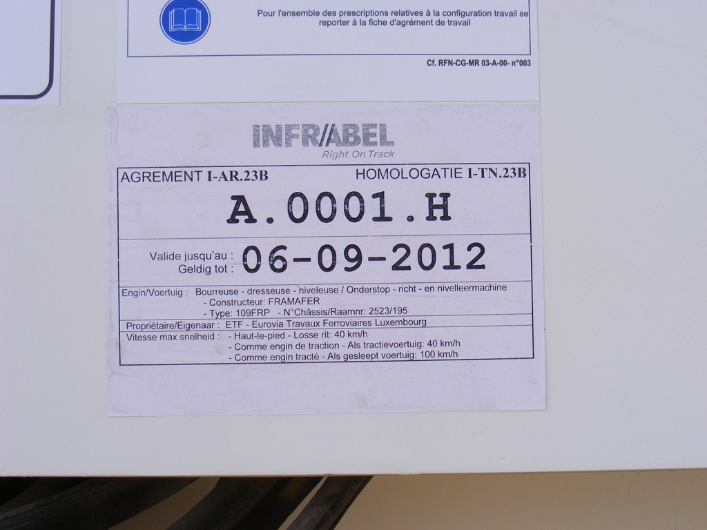 J'ai un nouveau Agrément de travail pour la 109 FRP : VT 97 015 à vérifier sur l'engin :bizarre: