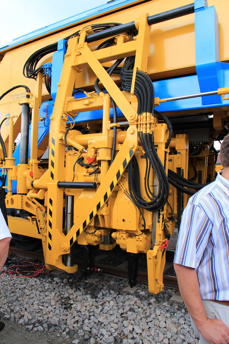 Cette machine est équipée d’une navette comportant quatre unités de bourrage et une pince nivellement-ripage. Lors du traitement des appareils de voie, les dispositifs télescopiques de levage de la déviée assistent ces outils. La navette de bourrage, très réactive, lui confère un rendement élevé en pleine voie pour une machine simple tête. L’important mouvement longitudinal des unités de bourrage permet de traiter, avec aisance et rapidité, les voies équipées de traverses en acier de type « Y ». Située au centre de la machine, la cabine bourreur offre une excellente visibilité sur les outils et la voie. Grâce à la simplicité d’utilisation et à l’ergonomie des commandes, un équipage composé de deux opérateurs est suffisant.
