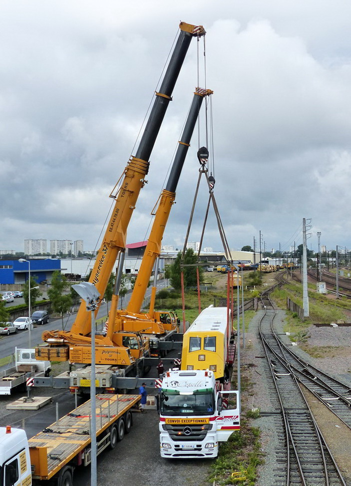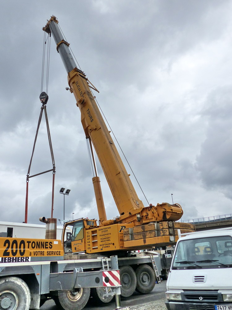 il est 10h41/42 les élingues de levage son installées sur les quatre ancrages du BROOM rétractable et le levage commence