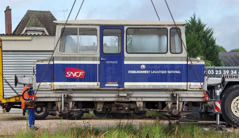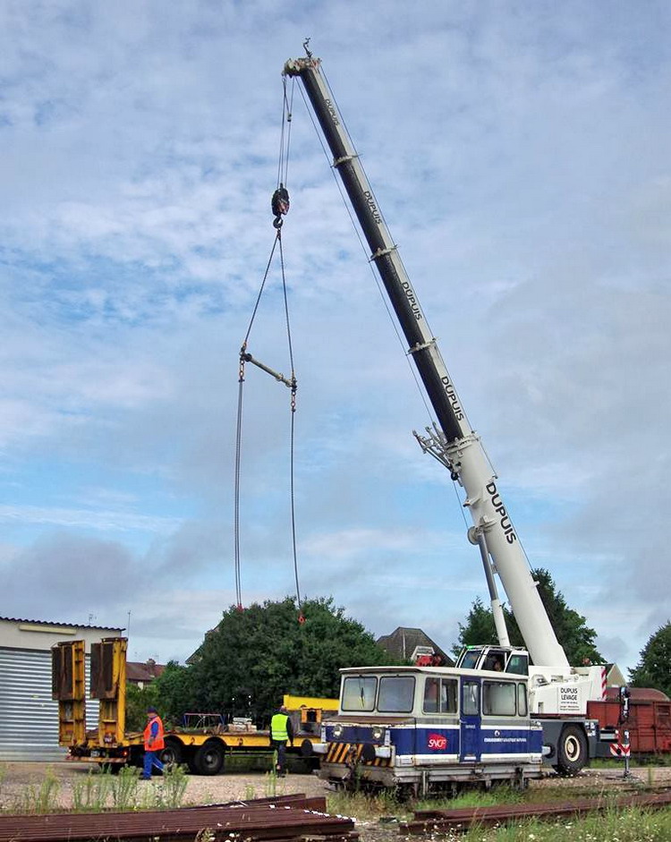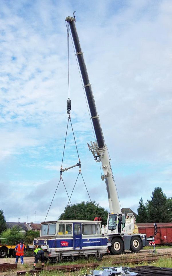 la Mauzinette n° 3, à Tergnier, c'est assez exigu pour mettre le camion sur la voie... et la grue du camion n'a pas la capacité de sécurité pour le levage de la draisinette...
