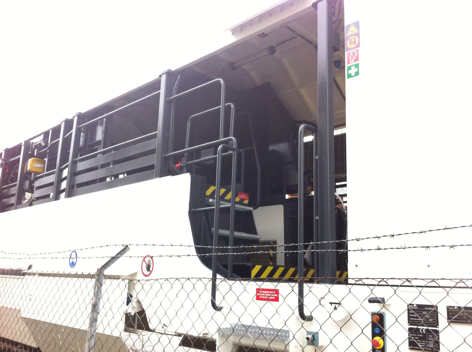 voici le wagon Jicad construit par Matisa, il permet le travail en sécurité du personnel