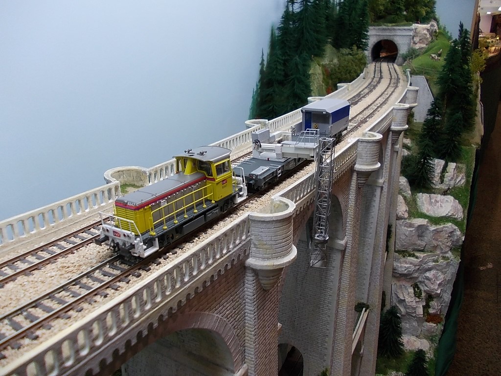 Ayant trouvé ,à Rail Expo, un viaduc magnifique et avec l'amabilité du club ATV.37, j'ai pu faire quelques photos de la PF7 en position de travail ;)