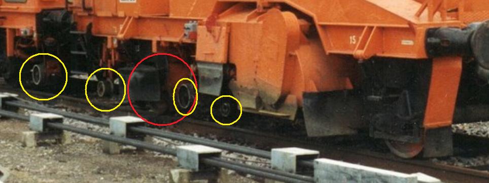 J'ai marqué en rouge ce qui me semble être un essieu central, et en jaune ce qui doit être des lorries de mesures, voire d'appui pour le module de balayage.