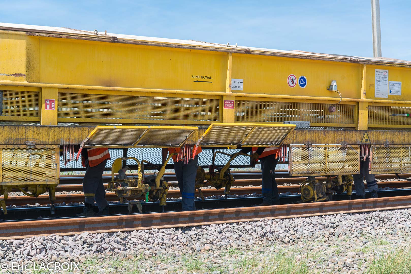 Après avoir effectué un premier passage le long de ce train de dégarnissage COLAS RAIL RM 900-HD 100 AHM, je décide de refaire un nouveau passage dans l'autre sens et de remonter à nouveau la zone de travaux.