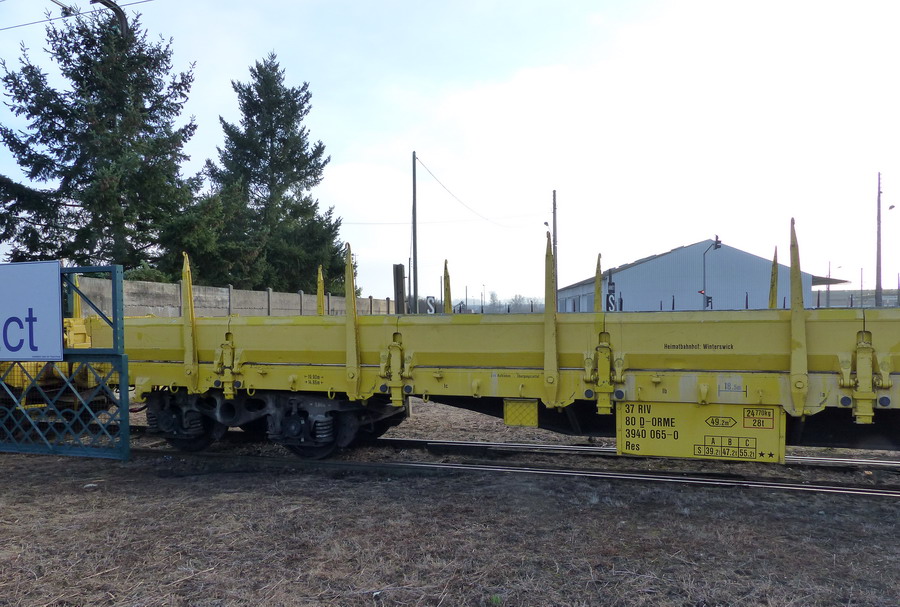 Voici le wagon 37 80 3940 065-0 Res RIV D-ORME de la société On Rail Gmbh (Allemagne) pour la société de location de wagons M.F.I sa (Matériel Ferroviaire et Industriel) de Strasbourg qui est une société spécialisée dans l'achat-vente, la location,