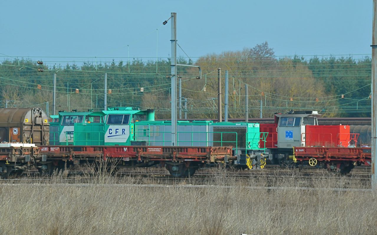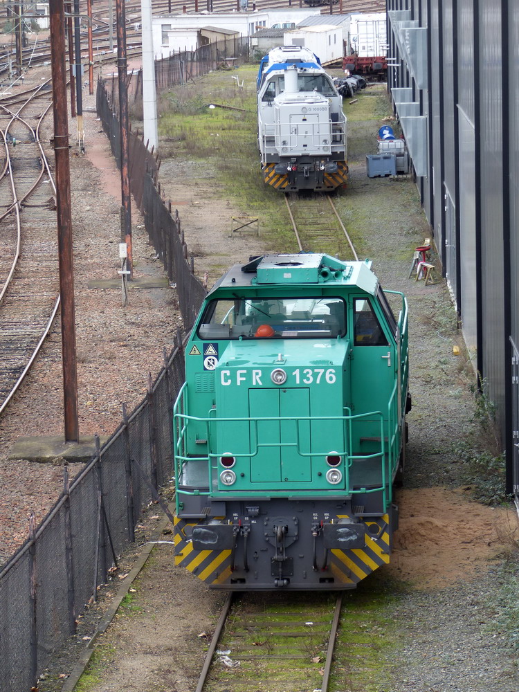 Voici la Vossloh G 1206 BB 1001376 mise en service le 06-12-2003 ex 461012 FRET SNCF en livrée verte puis 92 87 0061 012-6 CFR "1376"
