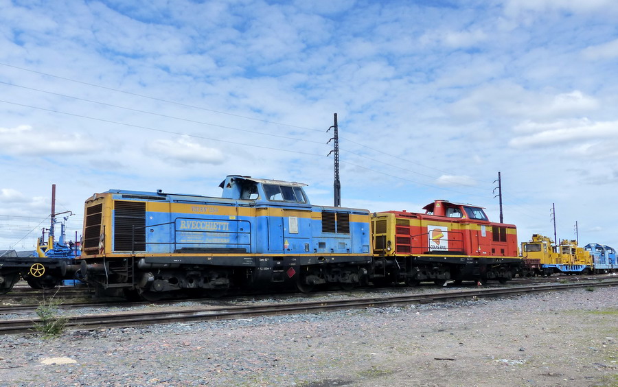 seulement l'arrivée d'une rame de WTT (Transport de traverses conditionnées) de Meccoli avec en tête une machine G 1206 de VFLI rouge