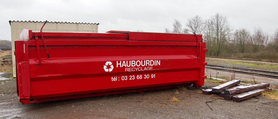 benne de location de la société Haubourdin Recyclage base de travaux ETF / Meccoli de la gare de Ham