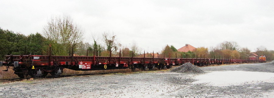 avec une rame de wagons plat à bogies et la V211R - 99 87 9 182 537-0 - Colas Rail