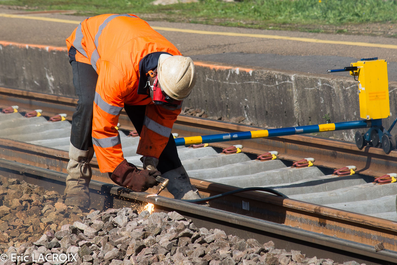 La découpe des rails déposés à Villeneuve la Guyard le 22 mars 2017.