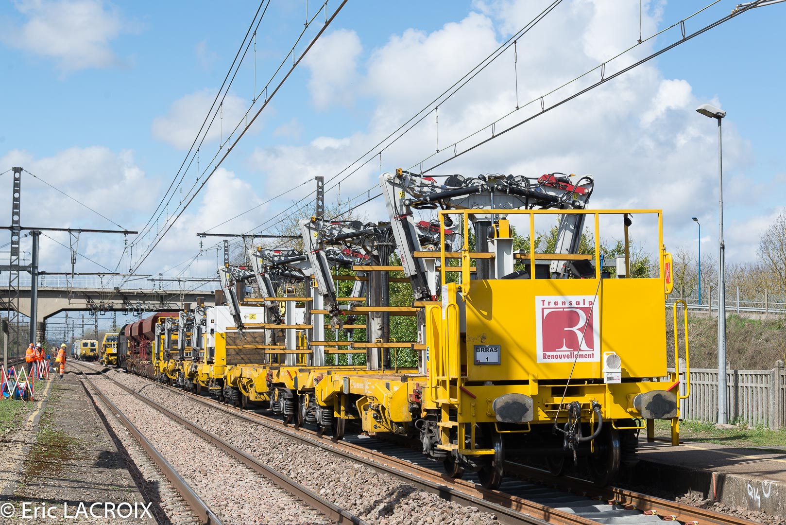 Couplage Wagon grue BRRAS Transalp Renouvellement à Villeneuve la Guyard le 22 mars 2017.