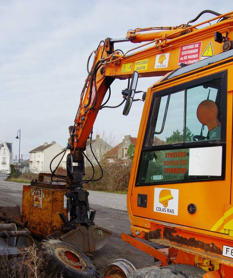La voici en gare de Mennessis (02) dans le cadre du RVB de la ligne Amiens Tergnier avec la démolition des anciens quais datant