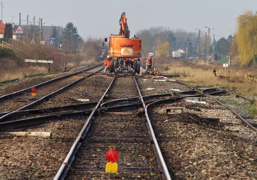 entre Eppeville et Ham (80) PK 58 de la ligne Amiens Laon, ce sont des remplacements de traverses en bois sur les appareils de voie,