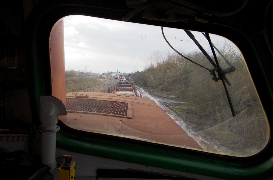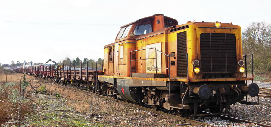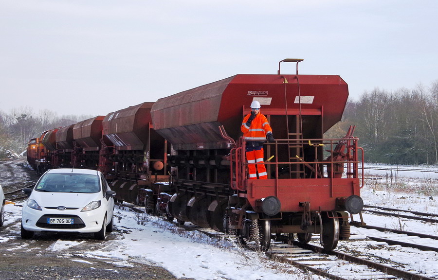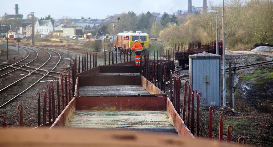 pour la manœuvre de wagons plat R39 à ranchers pour le chargement de ballast pour le RVB de la voie 2