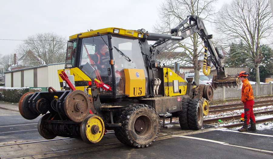PN n°37 d'Eppeville (80) pour une séance de débroussaillage avec enrayage de l'engin U5 sur la voie le 08-02-2018