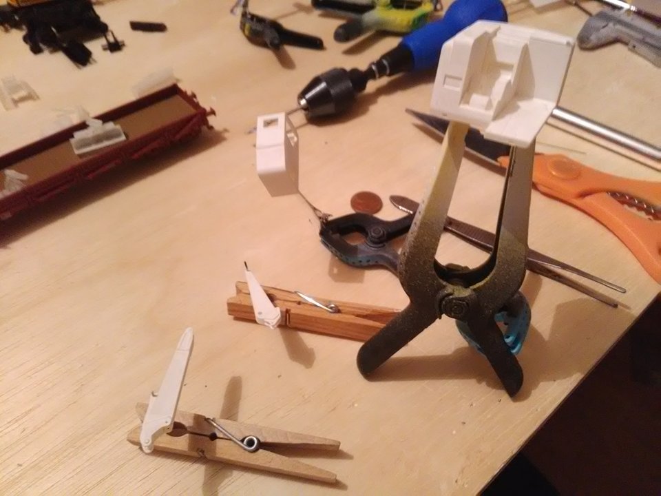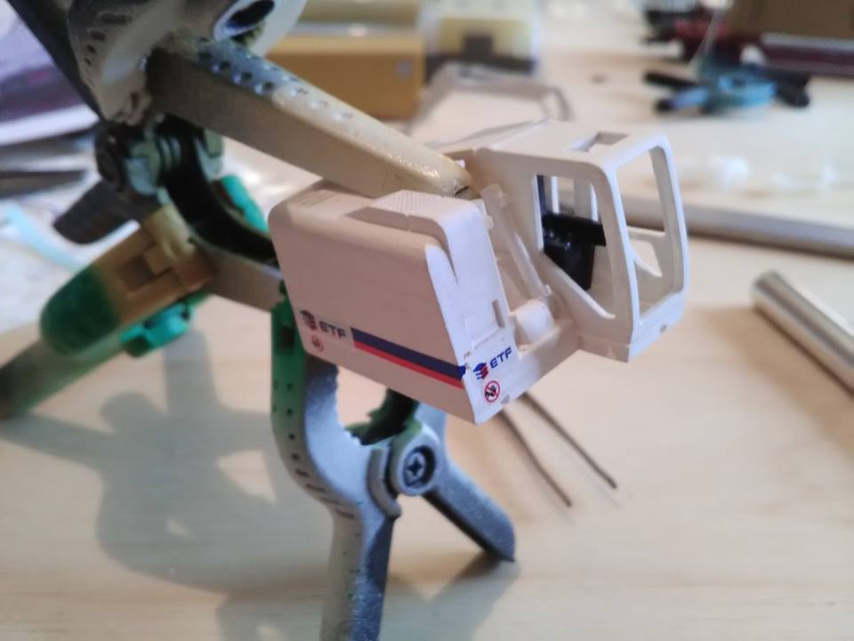 la parti blanche sa vient du kit, j'ai juste refait les tubes (noir) avec du fils gainé de 0.8mm que j'ai recollé sur la basse du tube de l'axe, juste 1 vérin est d’origine car je l'ai limé (seul qui la pas cassé)