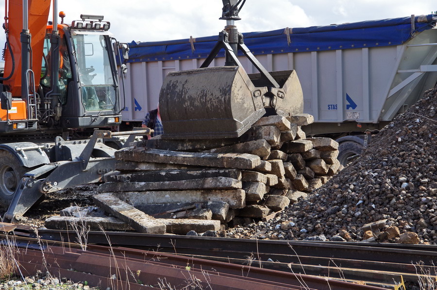 pour la suite du nettoyage et l'évacuation des vieilles traverses en bois, et aussi broyage des traverses en béton monobloc