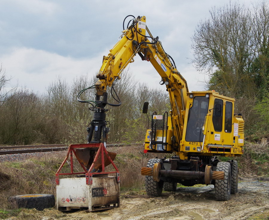 il y avait aussi deux Pelles Rail route sur la base de travaux de Colas Rail à Chaulnes le 29-03-2018
