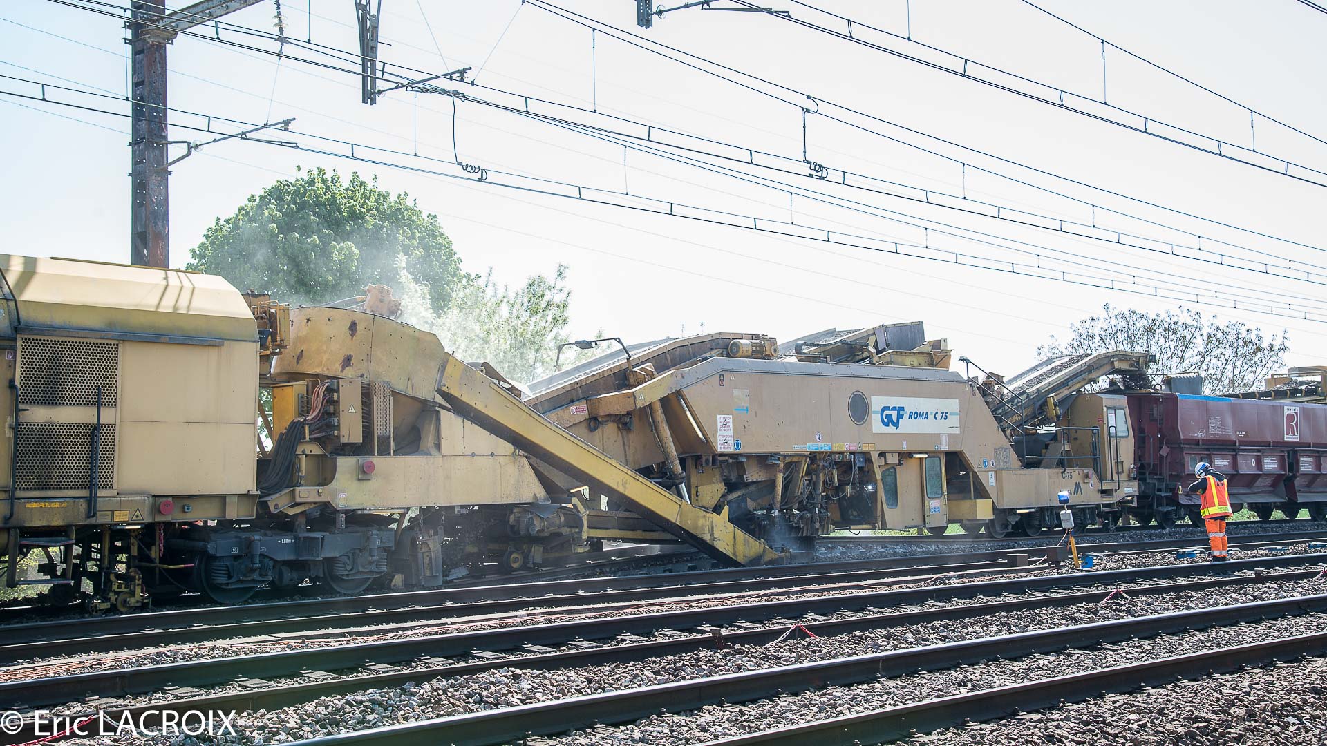 - Dégarnisseuse Cribleuse Matisa C-75 - 99 87 9 314 507-4 GCF Roma sur le RVB voie 1 bis à Courtois sur Yonne (89) en avril 2017.