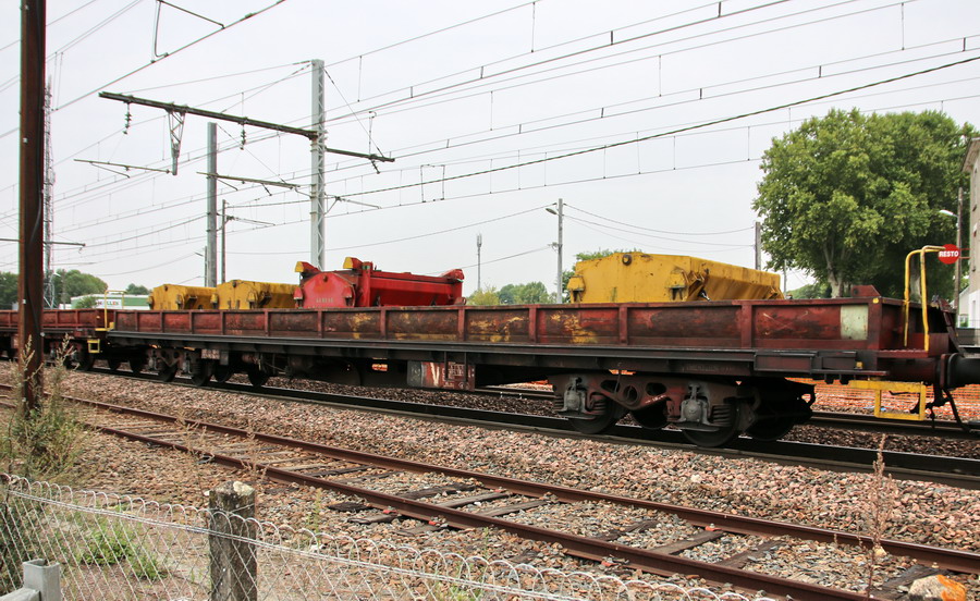 wagon 80 87 976 7 101-9 Ua R00 5 F-SNCF-PSL pour le ramassage et la distribution d'agrès du P95 d'ETF