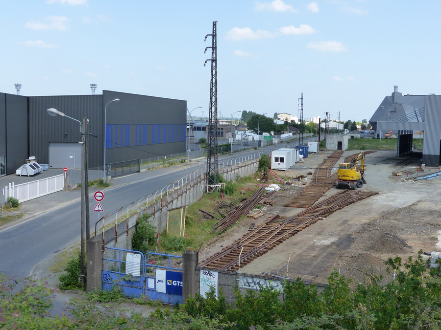 routier qui arrive à la gare de Saint Pierre des Corps puis la voie rentre dans la cour de la Socofer pour relier le réseau SNCF