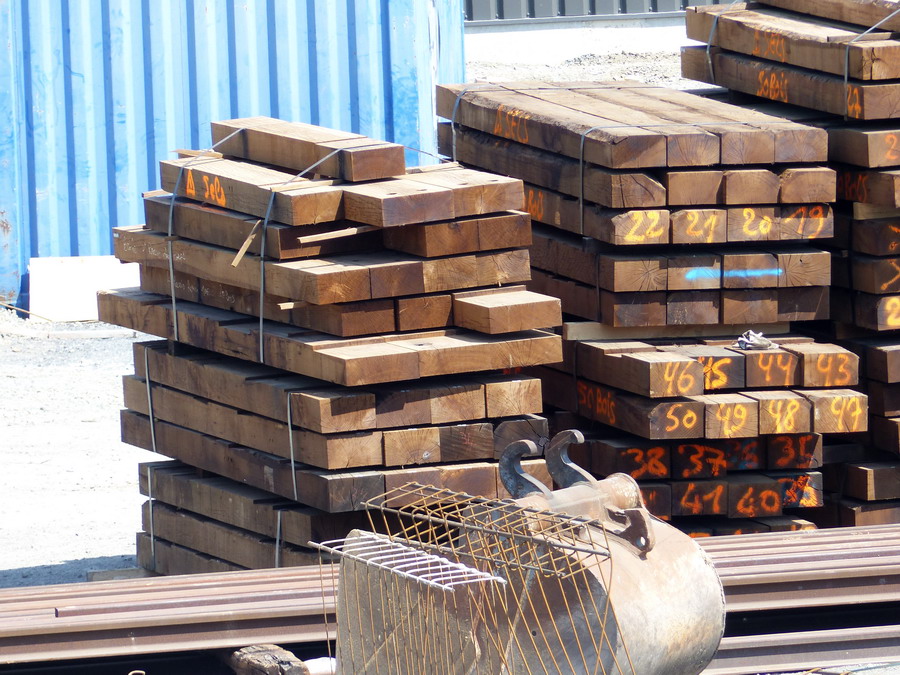 le stock de traverses en bois pour l'Atelier IMATEQ à SPDC le 06-05-2018