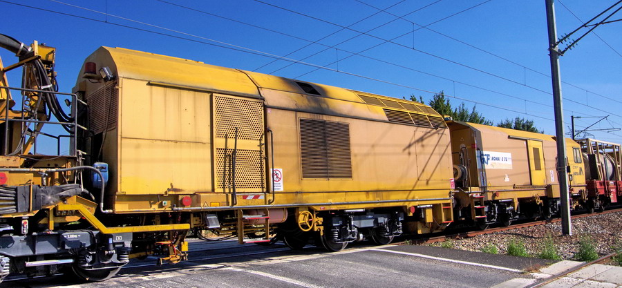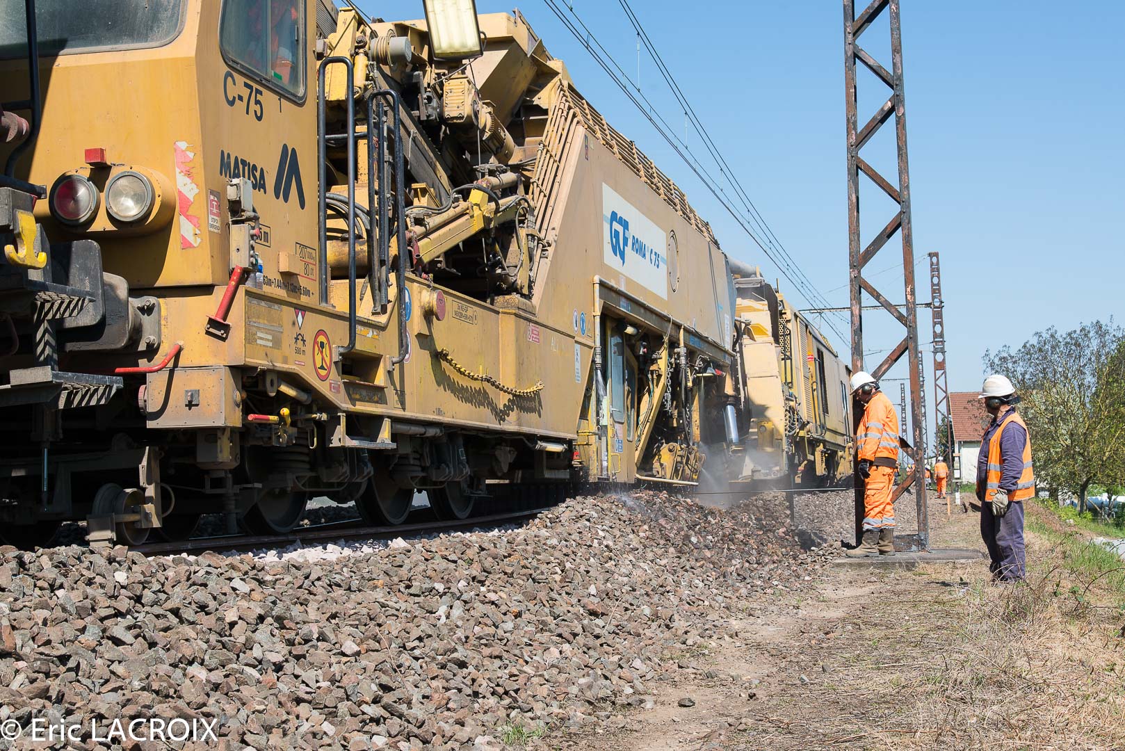 Dégarnisseuse Cribleuse Matisa C-75 - 99 87 9 314 507-4 GCF Roma sur le RVB voie 1 bis à Courtois sur Yonne (89) en avril 2017.