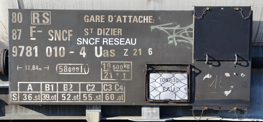 Voici le wagon citerne à boggies 80 87 978 1 010-4 Uas Z 21 6 - F SNCF-RS gare d'attache St Dizier