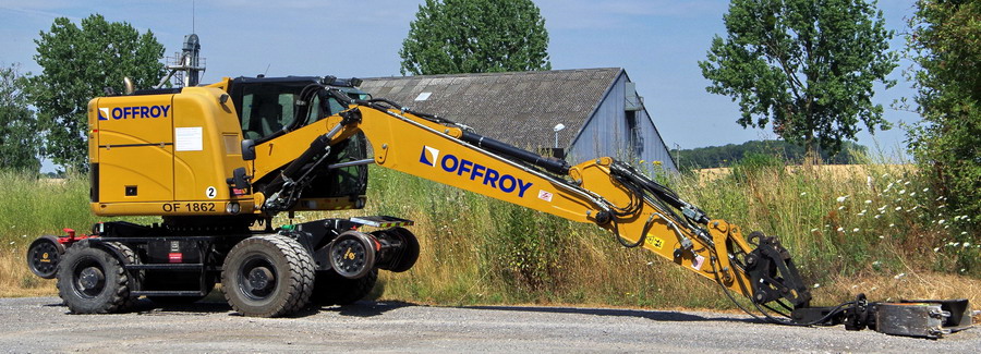 avec l'entreprise OFFROY du groupe NGE avec la présence d'une de leur Pelle Rail route