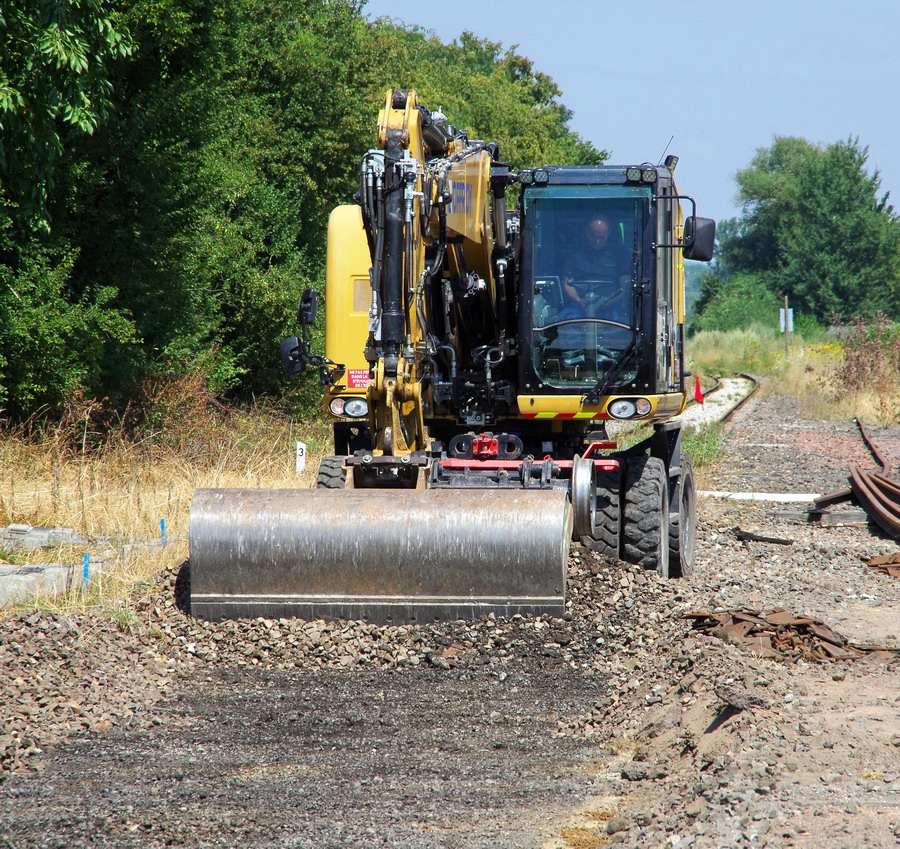 Pelle Rail route Unac 22 TRR n°H9A0143 Offroy 2 OF 1862 au PN n°92 en gare de Marle-sur-Serre le 23-07-2018