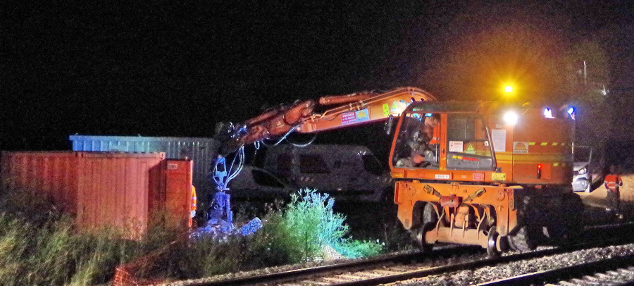 la Pelle Rail route UNAC 22 TRR UP2 n°EY200116 - Colas Rail - UNAC 3 - D1003087 pour les travaux nuit du 24 au 25 juillet 2018 au niveau des Ponts de Bray à Jussy (02)