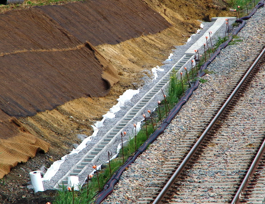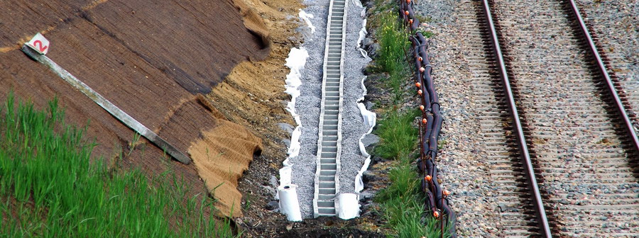 Ces fossés, à l’interface du ballast de voie et du remblai, permettent de drainer et d’évacuer les eaux pluviales se trouvant en bord de voie. Les fossés sont recouverts d’un couvercle manu-portable permettant une inspection rapide de l’installation (le fossé) en tout point de son linéaire.