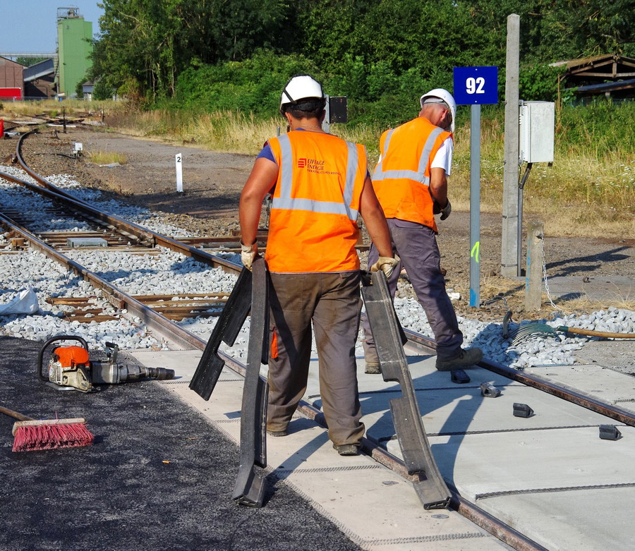 avec l'installation pour le PN n°92 des plaques de Platelages en grandes dalles préfabriquées en béton armé avec gorges où sont maintenus les rails à l'aide d'attaches classiques de la société Chapsol