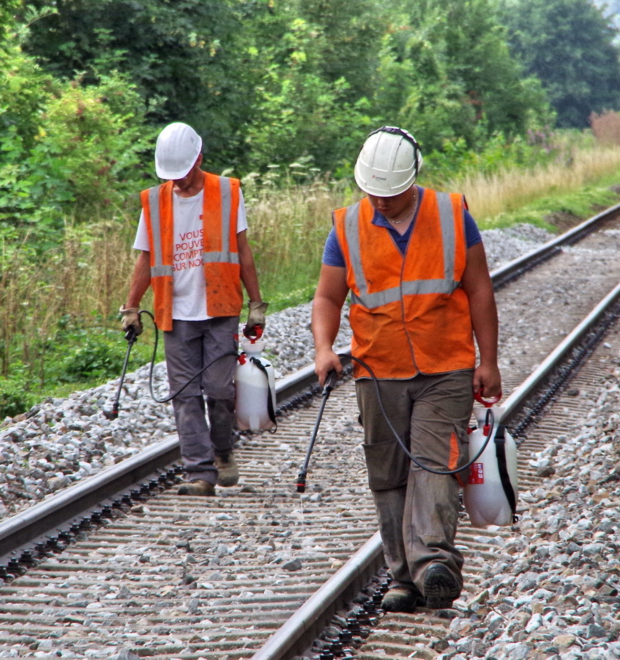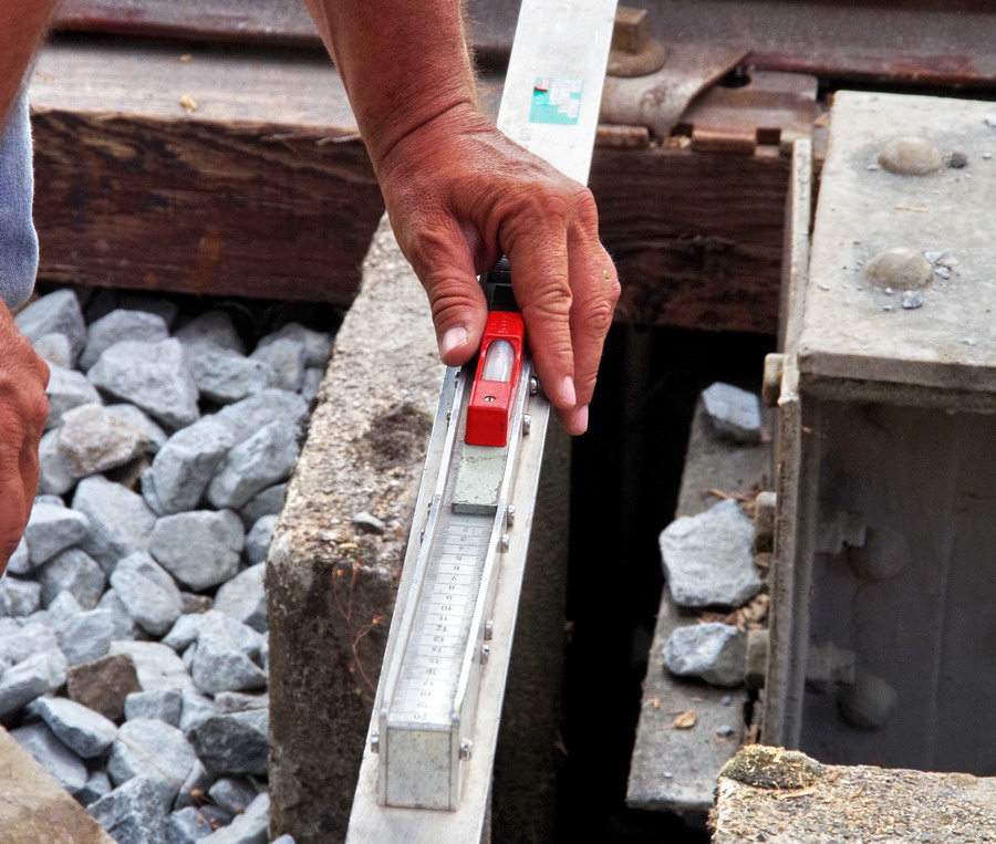 niveau de poseur à semelle plate sur le pont ferroviaire de la D617 à Rogny (02) le 27-07-2018