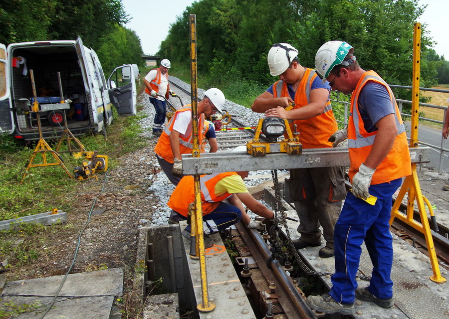 mise en place du Portique de substitution de rails pour le recalage de la VU à Rogny (02) le 27-07-2018