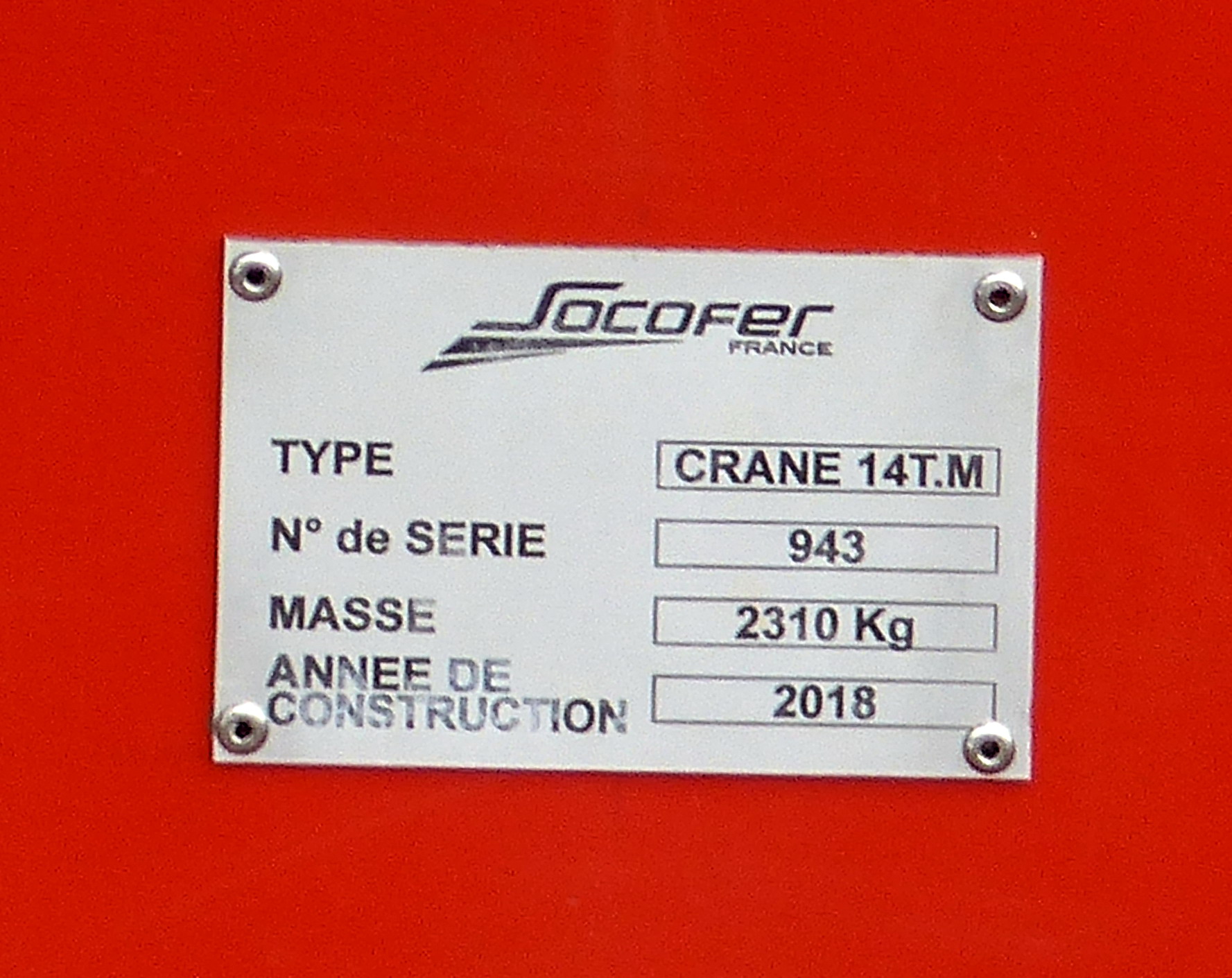 avec une grue de type CRANE de 14 T.M n° de série 943 - 2018 et d'une Masse de 2310 kg