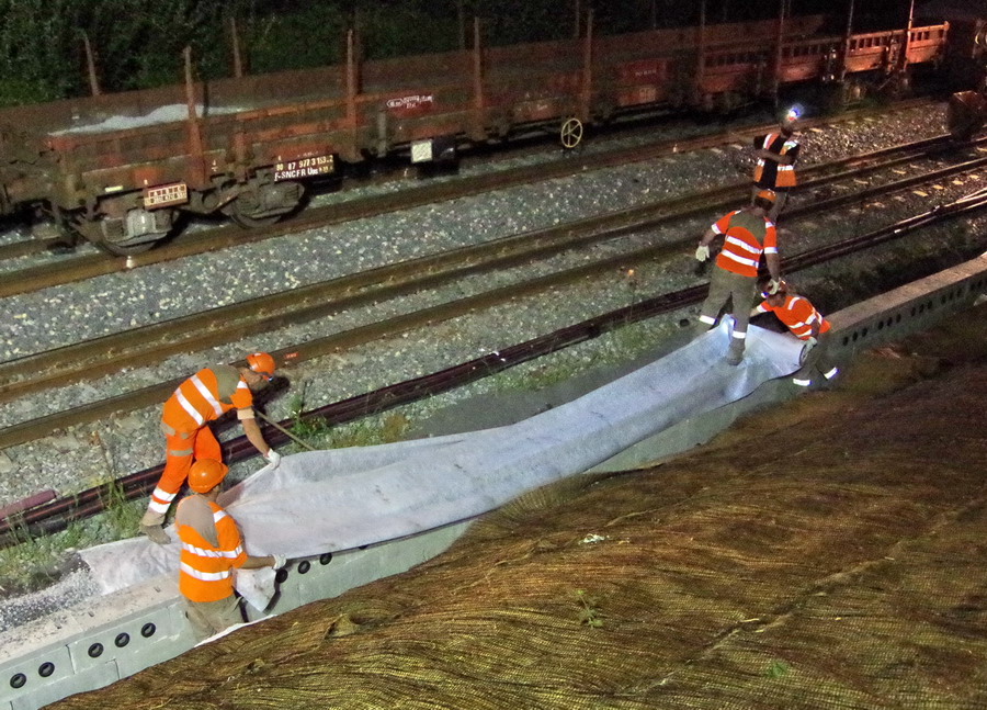 les travaux de nuit au niveau des Ponts de Bray à Jussy le 31-07-2018
