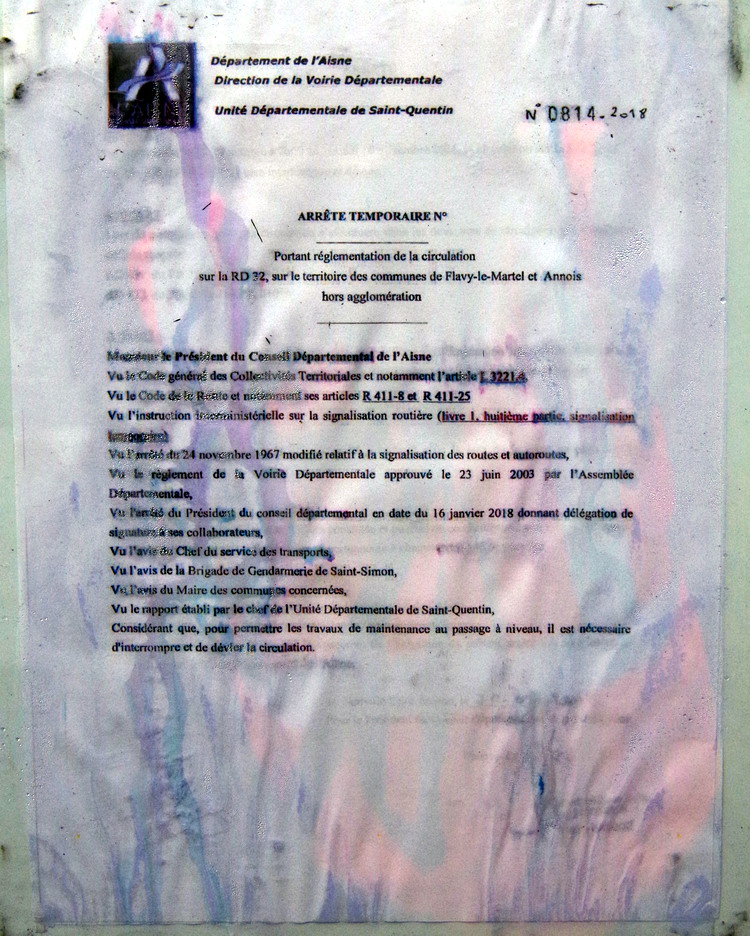 Travaux au PN 44 à Flavy-le-Martel et Annois (02) PK 67 + ou - sur la RD 32