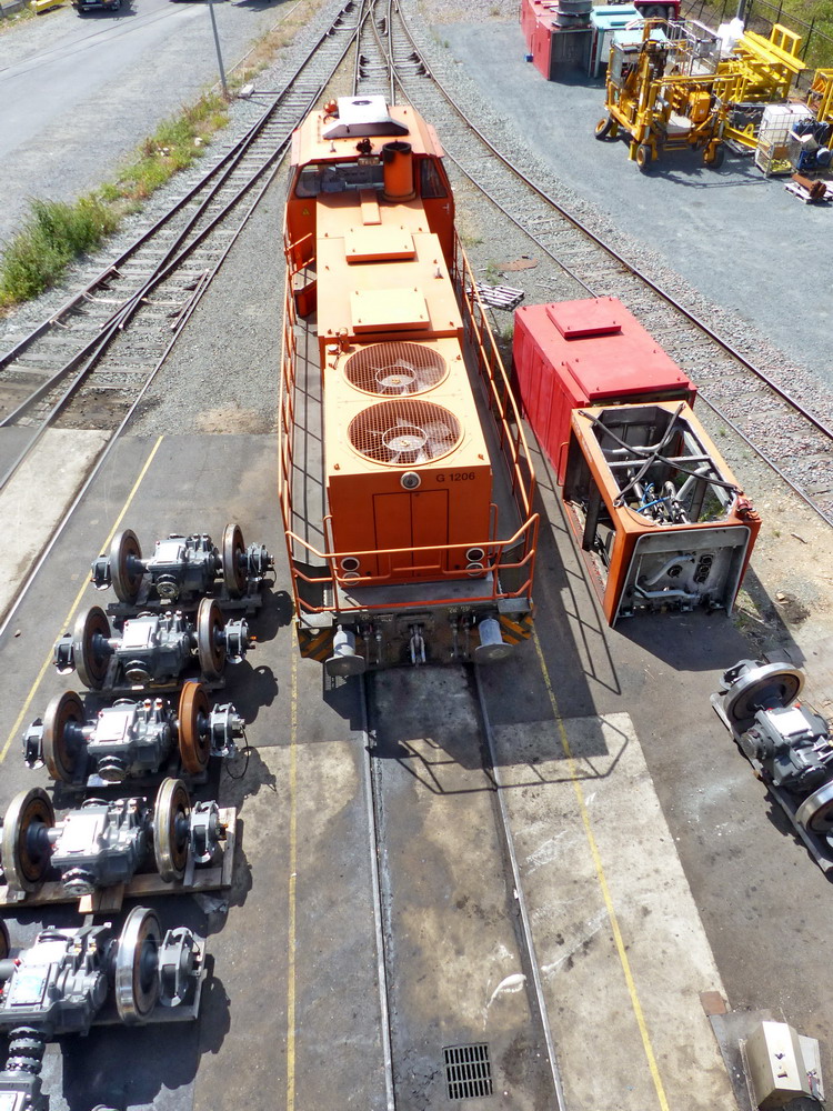 Quelque photos du 12-08-2018 avec les nouveaux essieux pour les G 1206 BB 5001552 et avec un élément des capots moteur de DVF