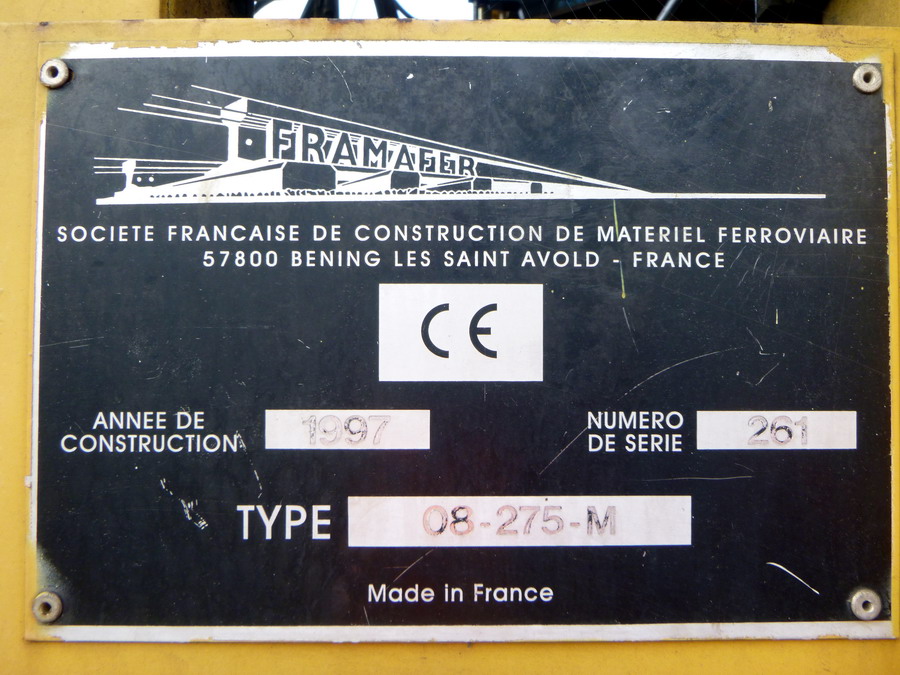 Voici la Bourreuse d'appareils 08 275 M Framafer n°261 de 1997 d'ETF Agence Luxembourg n° IET EM05-5179