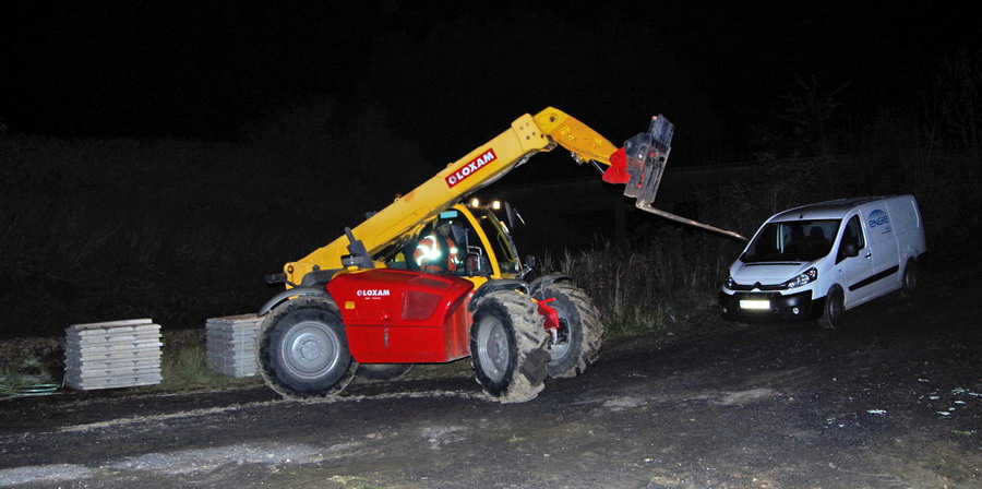 vers un bassin de décantation, le lieu est une zone boueuse et mise en place de câbles de mise à la terre avec enfouissement par
