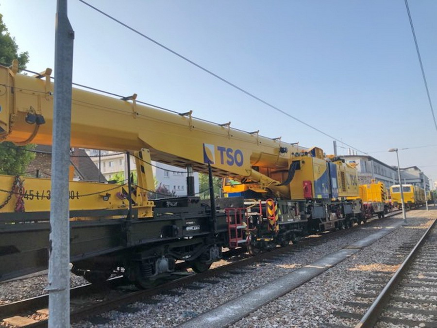 La grue Kirow est stationnée en gare de Massy-Palaiseau depuis une semaine :